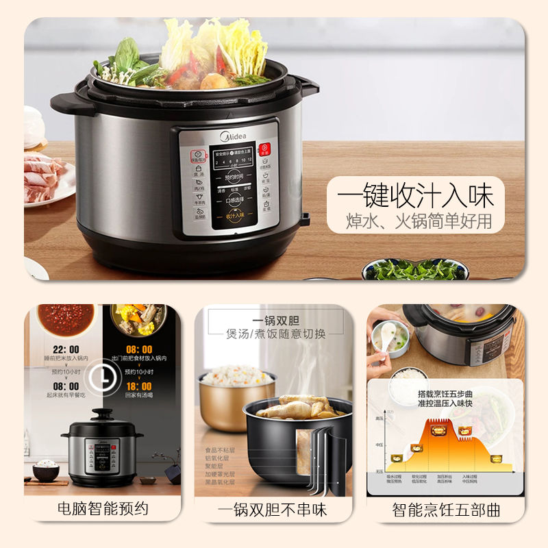 • 京东电器美的电压力锅智能预约双胆家用煲汤卤肉多功能高压锅饭煲
