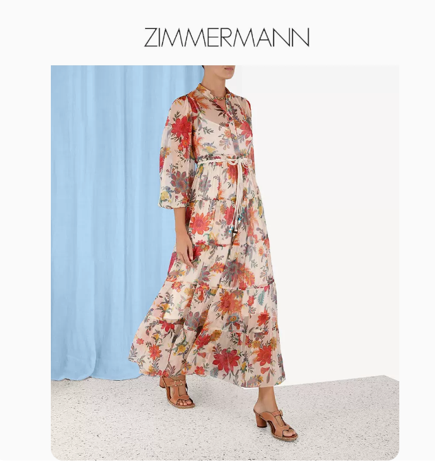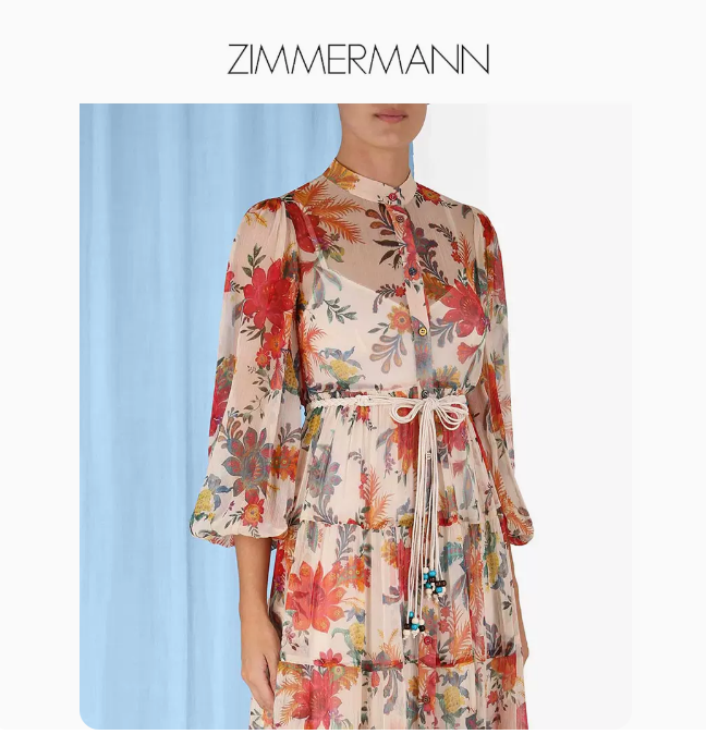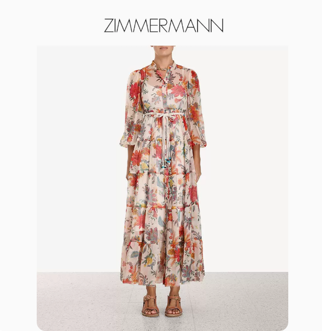 • Zimmermann 2023夏季新款Ginger真丝花卉印花层叠式新中式连衣裙