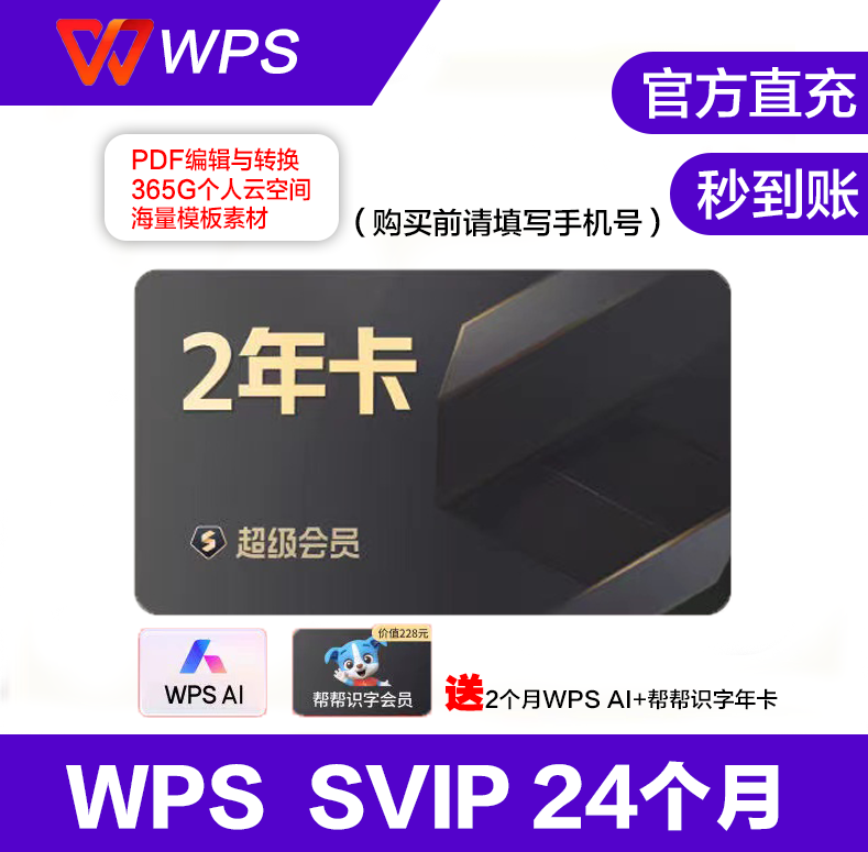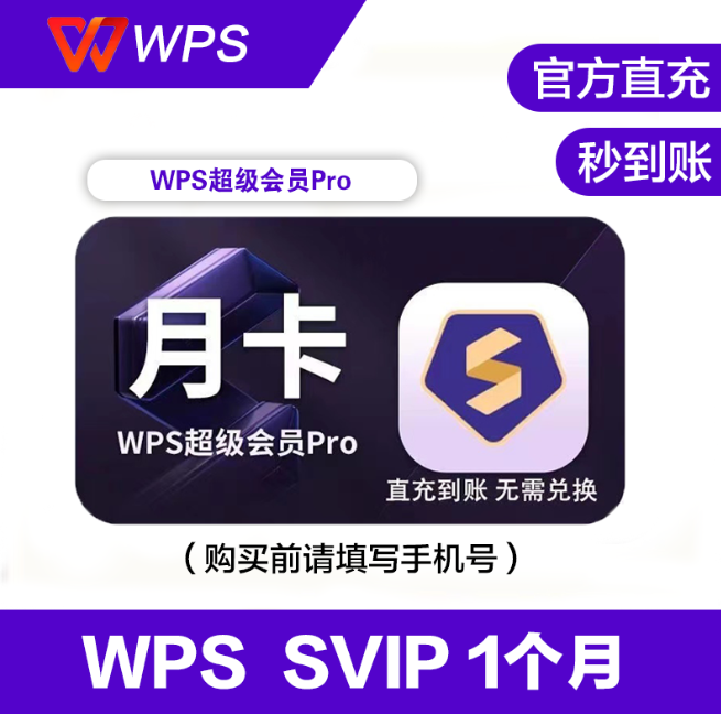 【自动直冲】WPS超级会员『12个月』直冲丨立即到账