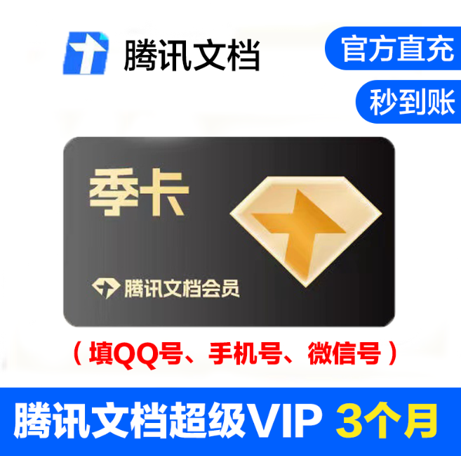 腾讯文档VIP会员季卡3个月直充立即到账【自动充值】