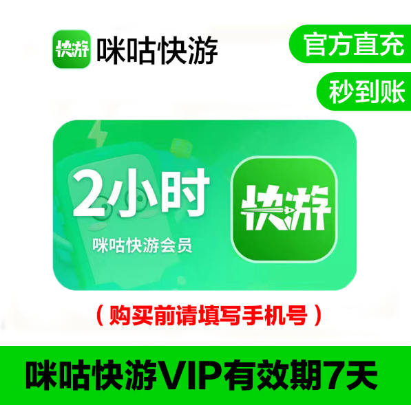 【不支持电视端】咪咕快游会员7天有效期时长2小时